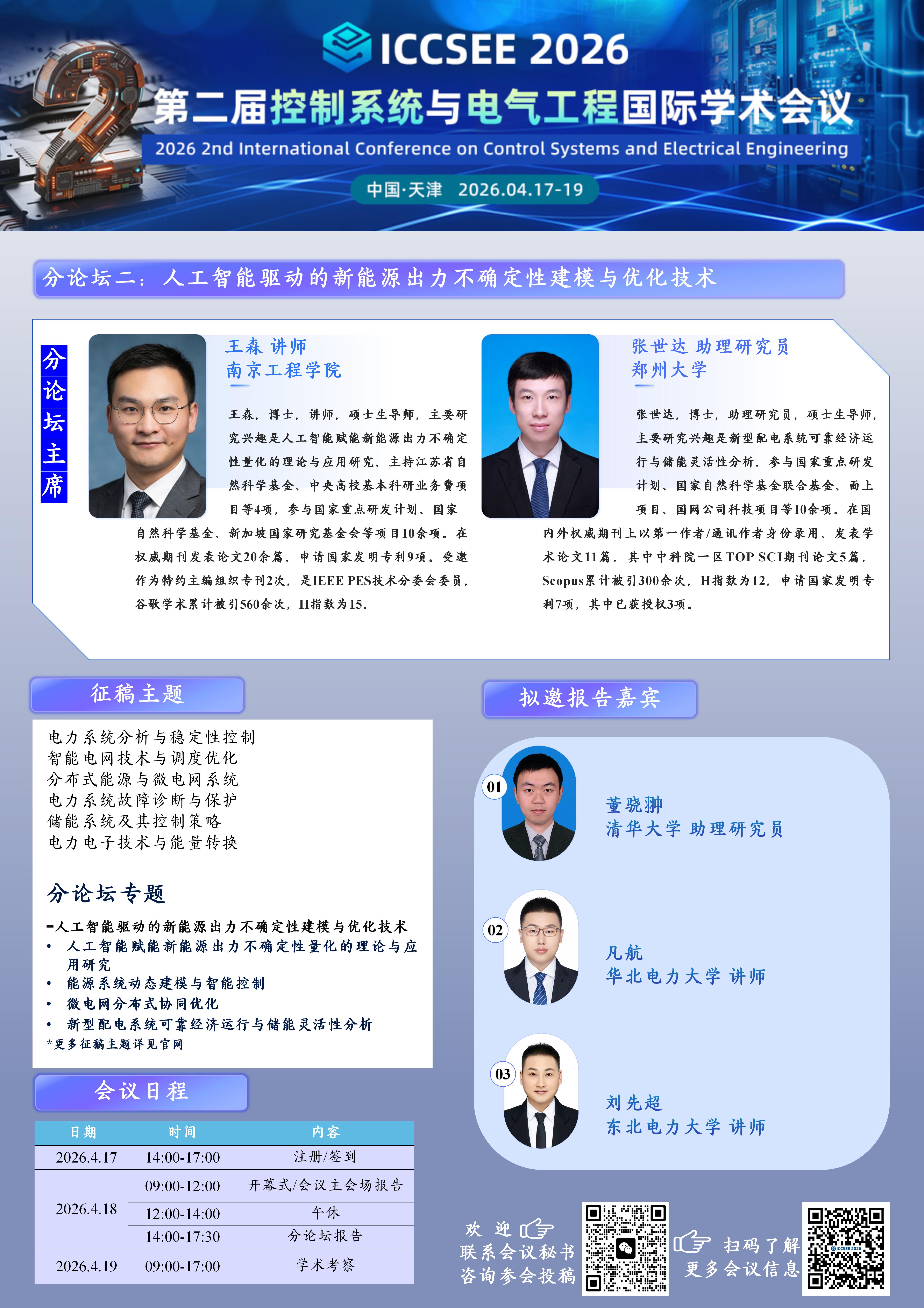 分论坛主席:王森 讲师 南京工程学院、张世达 助理研究员 郑州大学
