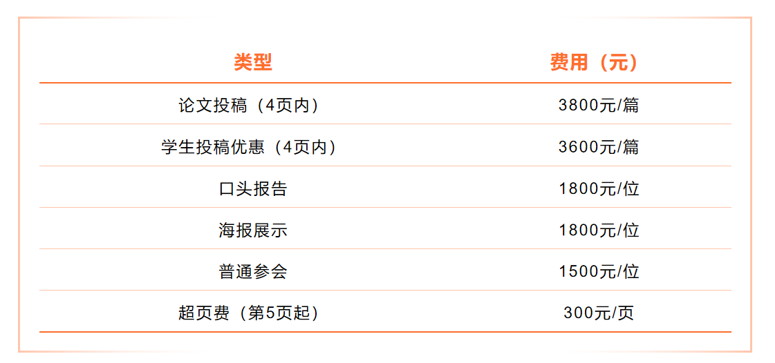 1. 投稿作者参会:录用并完成注册的文章,每篇文章可享有一个免费参会(普通参会/口头汇报/海报展示)名额;