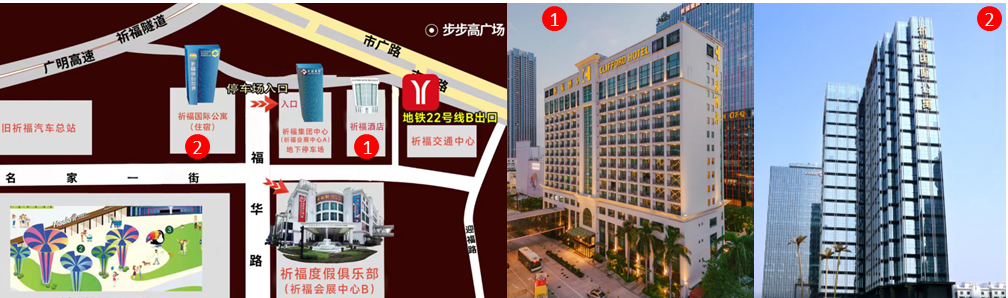 2、广州祈福国际公寓(会议协议酒店)地址:广州市番禺区市广路祈福新邨福华路24号;协议价格:豪华大床/双床房(含早,360元/晚)