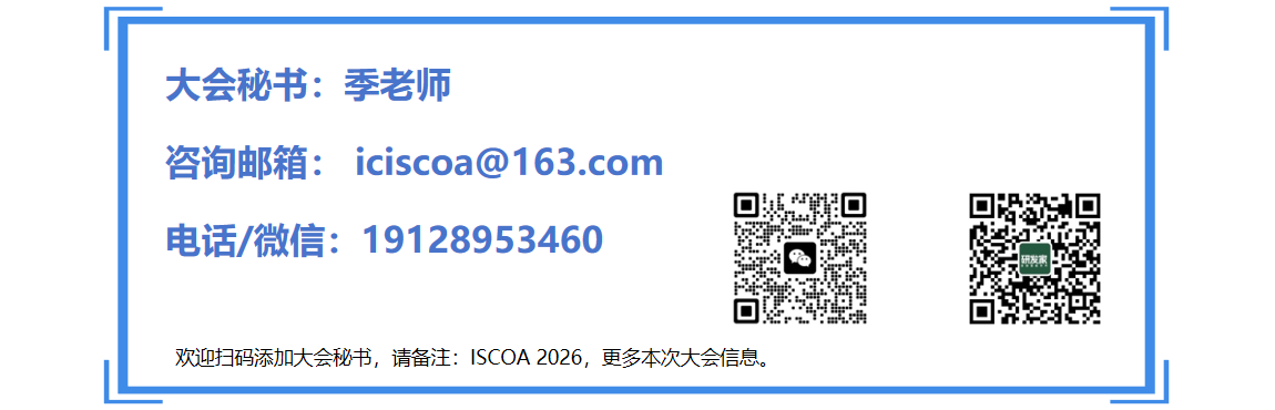 缴纳 ISCOA2026 会议注册费,即可享有免费优先-期刊投稿机会。