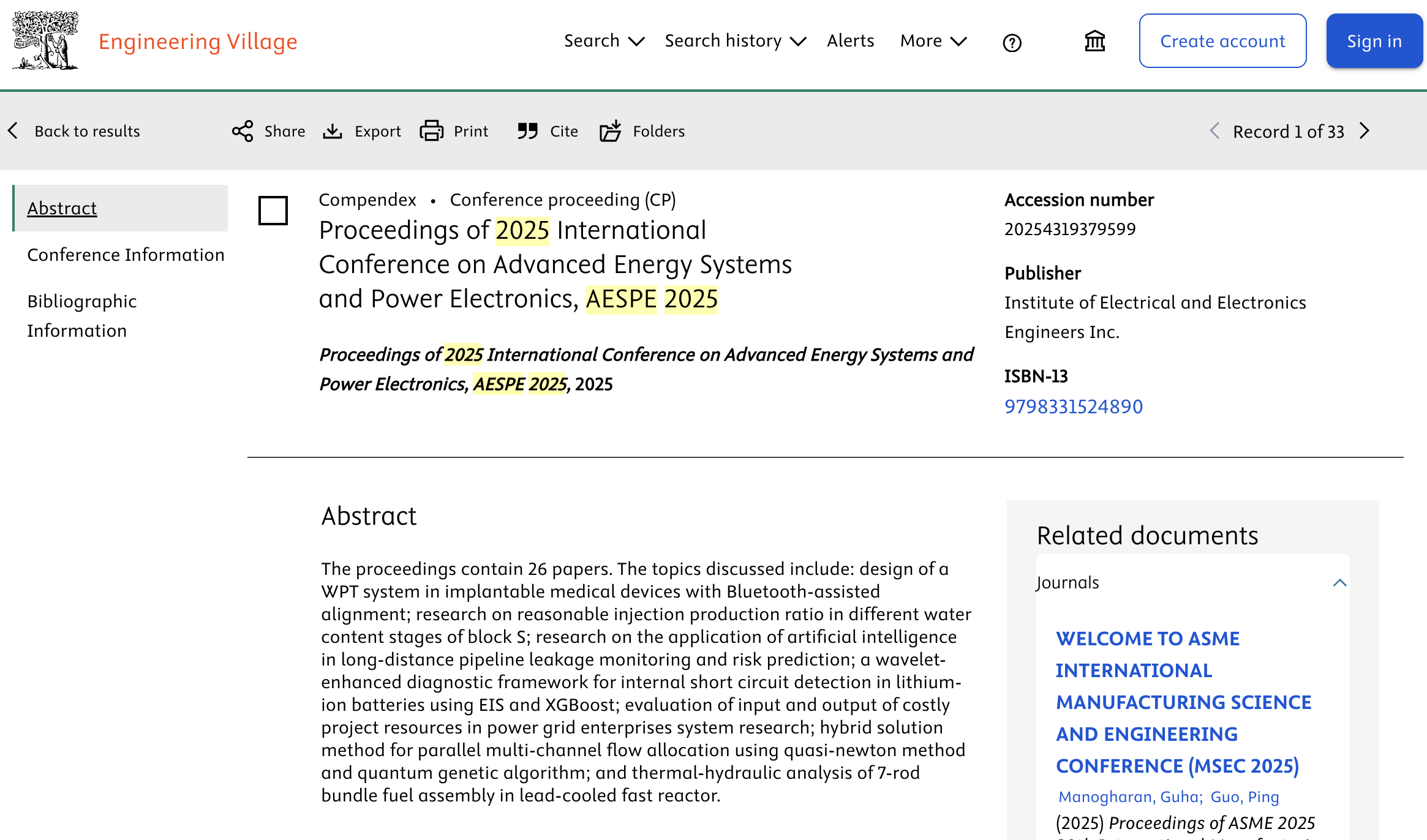 我们荣幸地通知您,2025年先进能源系统和电力电子国际会议(AESPE2025)已被EI Compendex正式收录。作者可登录EI数据库查询收录情况。如需检索证明,请凭论文标题在【高校图书馆】申请开具。