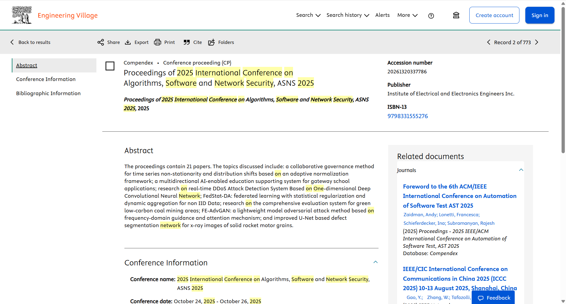 您好!我们很高兴通知您,2025年算法、软件与网络安全国际学术会议(ASNS2025)已经成功实现EI Compendex检索,作者们可自行登录 EI 数据库查询检索。如需查询相关论文进度情况,也可联系组委会。