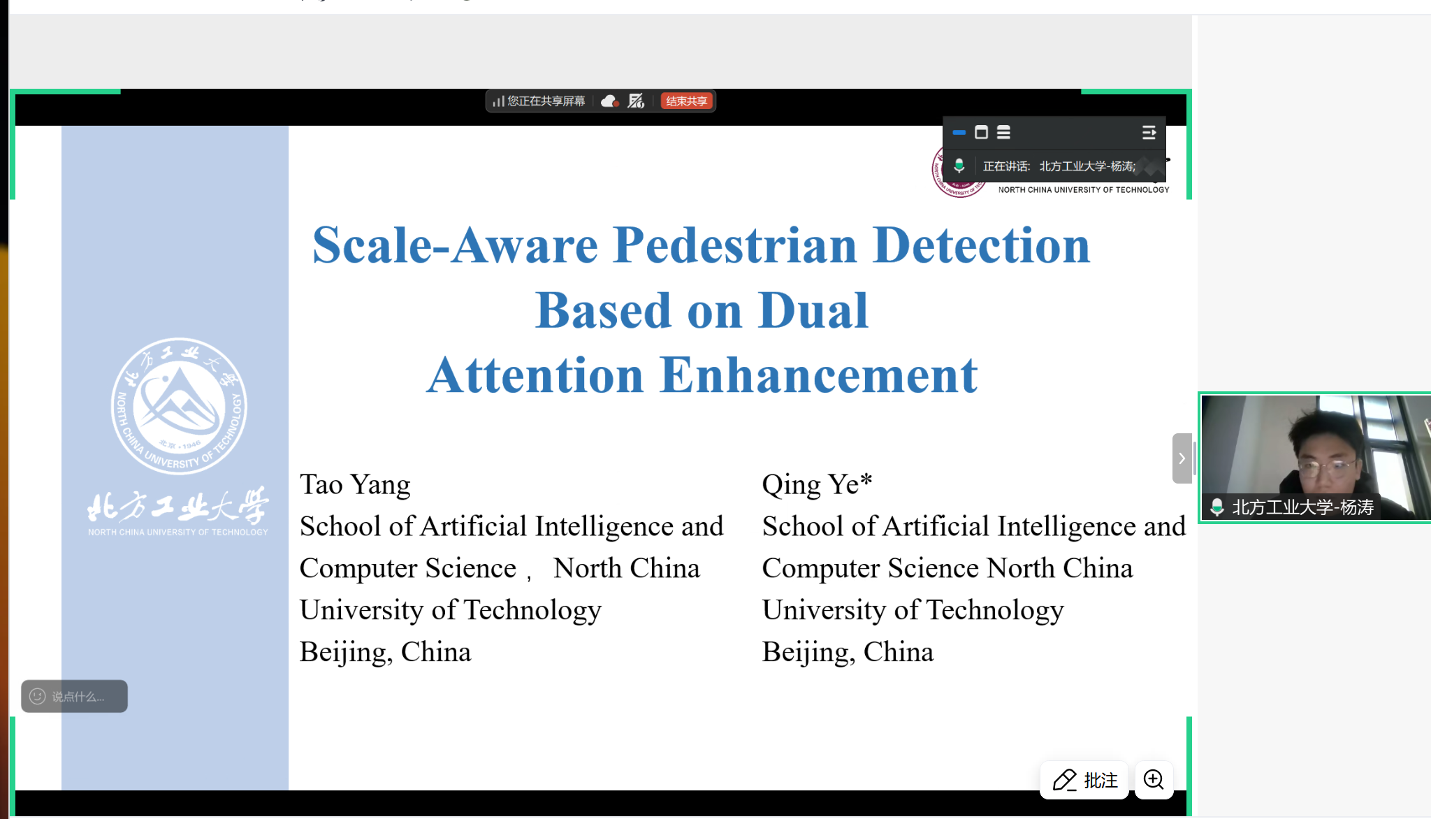 特邀报告环节结束后,会议进入口头报告阶段,青年学者们聚焦细分领域的创新成果进行了精彩分享。北京工业大学曹益皓提出