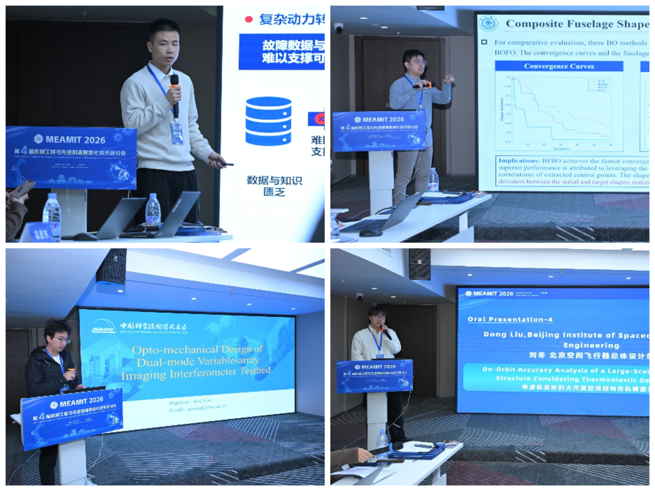 在青年学者口头报告环节,来自海军工程大学、上海交通大学、中国科学院国家天文台、北京空间飞行器总体设计部、北京航空航天大学、天津大学等单位的七位青年学者与工程师,分别围绕复杂装备数字孪生智能运维、复合材料机身形状控制、光机设计、空间结构在轨精度分析、智能谐波减速器设计、空间机构模型修正、水下无人潜航器智能运维等多个前沿方向进行了系统汇报。报告内容涵盖理论研究、技术研发与工程应用,充分展现了青年科研人员与工程技术人员在智能制造领域的创新活力与实践能力。