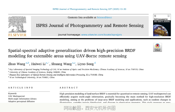 近日,中国科学院Xi安光机在遥感光谱智能感知领域取得重大突破,在遥感领域TOP期刊ISPRS上发表了相关成果。 Journal of Photogrammetry and Remote Sensing(SCI 1区TOP,IF=10.6),这是Xi安光学研究所第一次以第一单位在本期刊上发表论文。第一篇论文作者是王卓博士生,通讯作者是李海巍副研究员,王爽研究员是合作者。Xi安光学研究所是第一个通信单位。