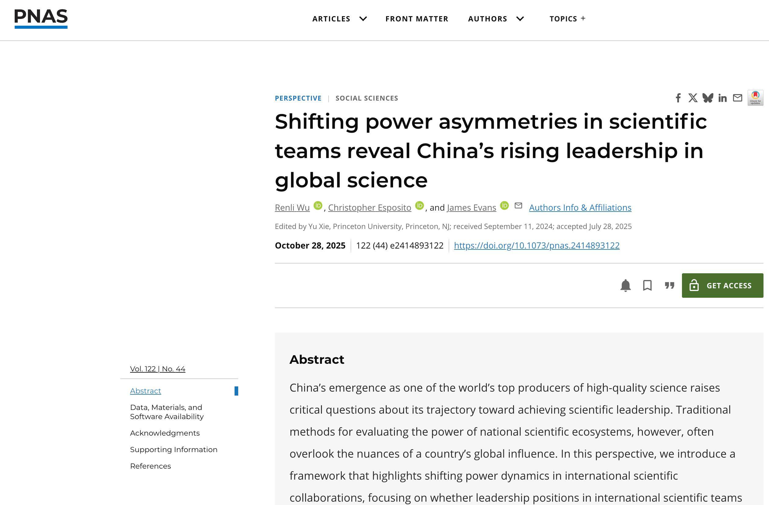 研究人员称,通过聚焦中国科学家在跨国合作中学术主导地位的变化,这一研究视角为外界观察中国在国际科学领域日益增强的领导力提供了新维度。
