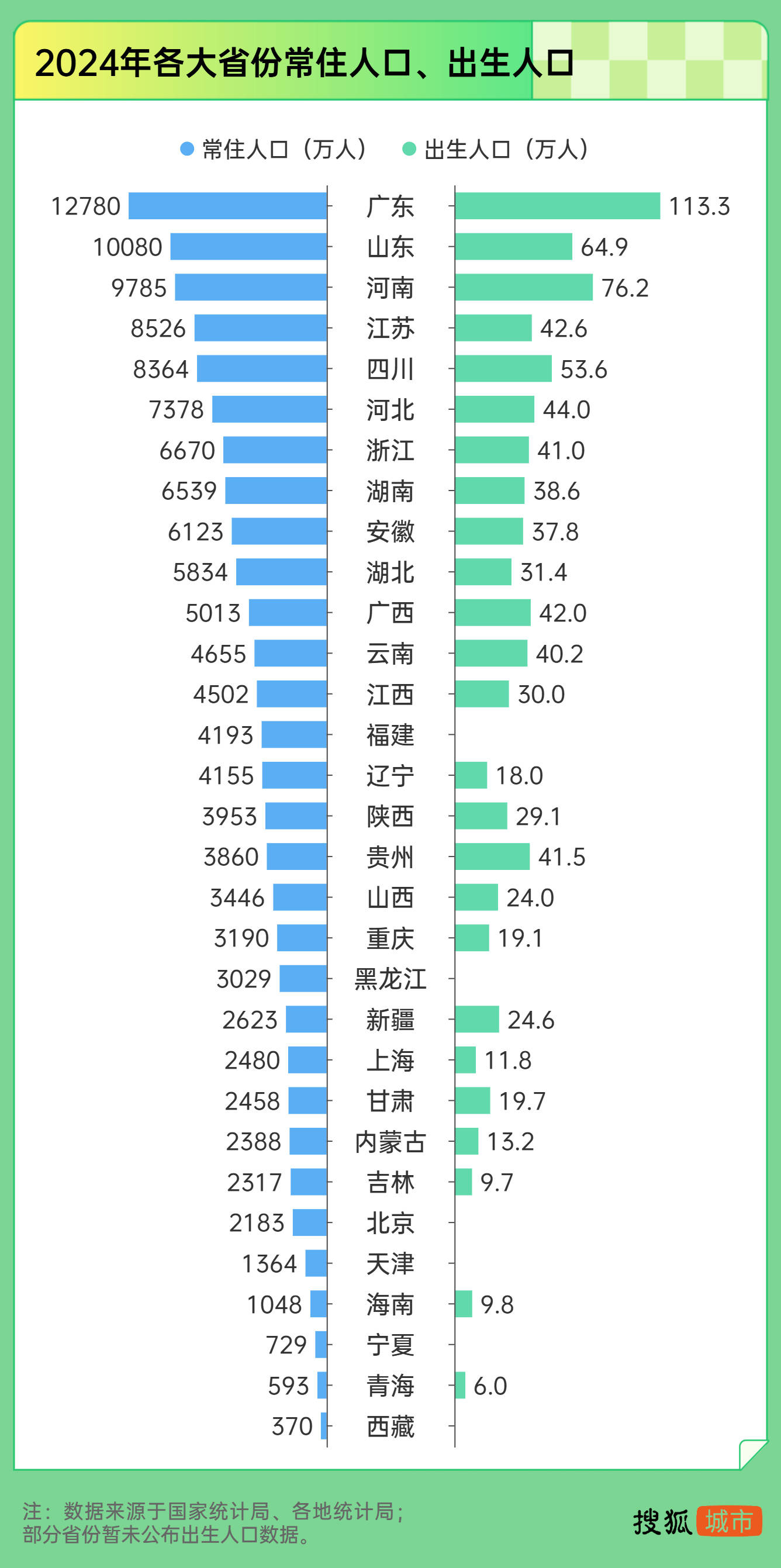 与东北相反的是广东。2024年,广东常住人口12780万人,连续18年位居全国第一;出生人口113.3万人,连续5年成为唯一出生人口超100万的省份,连续7年成为第一生育大省。