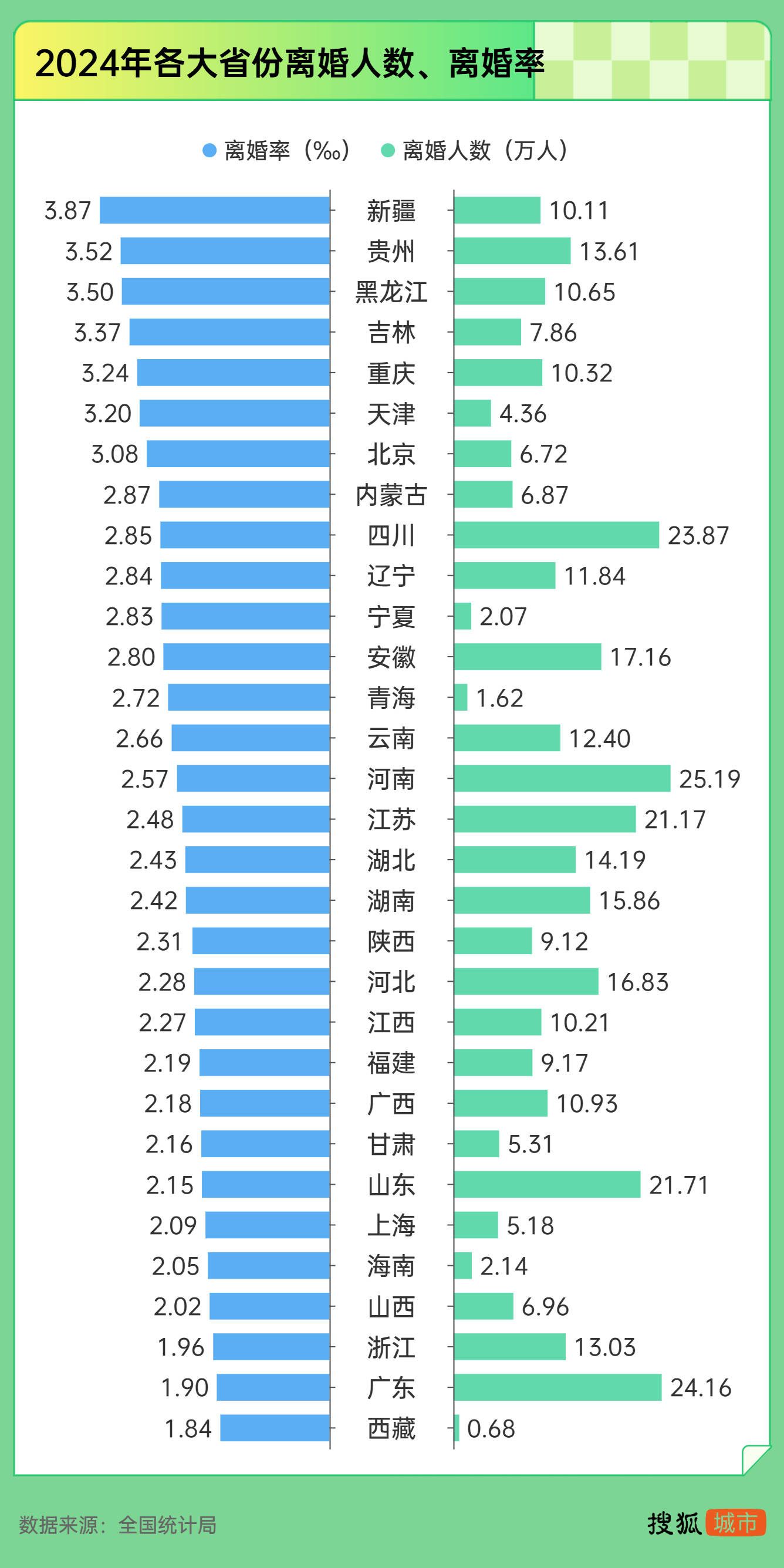 2024年,新疆、贵州、黑龙江、吉林、重庆、天津、北京、内蒙古、四川、辽宁离婚率居全国前十,部分省份超过3‰。“能过过,不能过就离”,在这些省份可能并非说说而已。