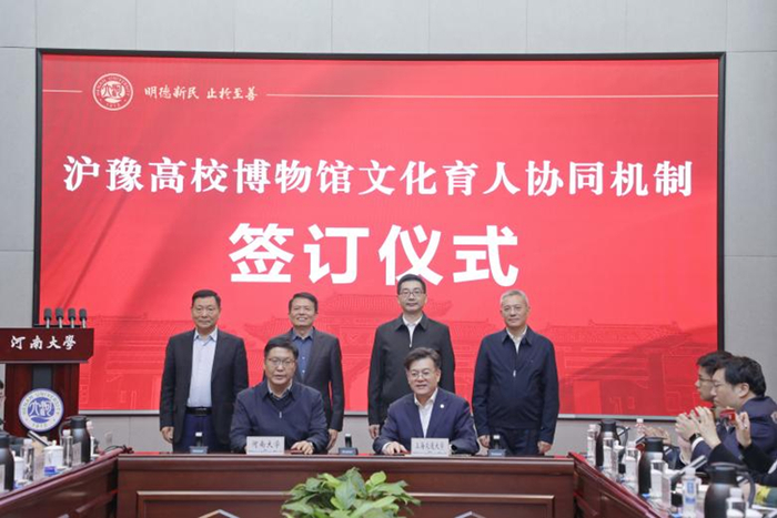 韩冰表示,河南是中华文明的重要发祥地,历史文化资源丰厚。上海是现代中国教育的重镇,是改革开放的前沿。希望两地高校以此次签约为契机,聚焦立德树人,共同策划主题展览,开发特色课程,开展研学实践,让静止的文物“活”起来,让深厚的文化“动”起来。建立常态化的交流互访机制,推动馆藏资源、学术研究、策展经验、数字技术的共享共建。大胆探索“博物馆+科技”“博物馆+美育”“博物馆+文创”等融合发展新路径,提升观展体验,扩大文化辐射力。