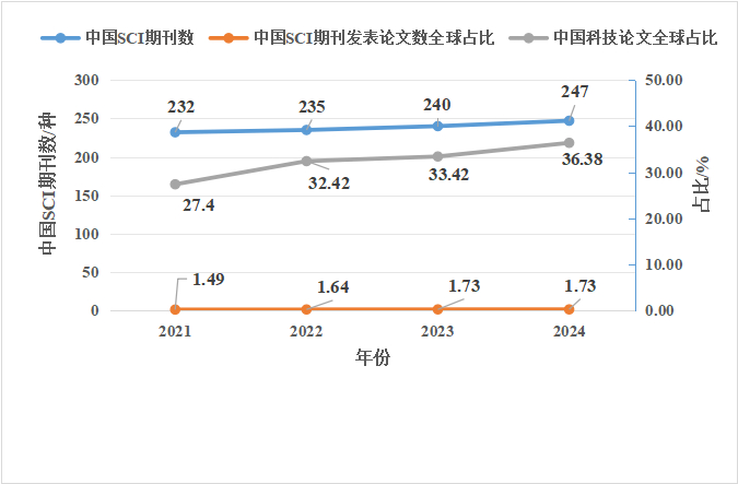 2024年中国SCI期刊数量和发文量示意图。中国科协供图此外,《蓝皮书》指出,我国学术出版能力建设中面临多重挑战:如期刊学科交叉布局与发达国家存在差距,期刊在决策支撑方面的功能还不充分,集约化服务水平仍需加强,知识服务能力与品牌影响力均有提升空间,自主科研评价体系对国内期刊发展支持不足,优质稿源外流现象仍较明显,自主评价话语权有待进一步确立。