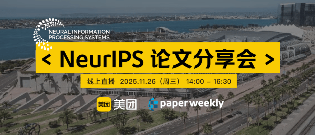 🎯 活动预告:「NeurIPS 2025 论文分享会 」将于 11月26日(周三)下午线上直播,我们邀请了其中4篇论文的作者分享相关知识点和技术思考,扫码即可免费报名👇