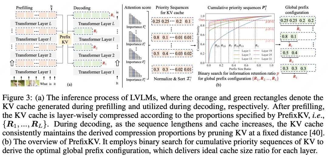 为了缓解这个问题,我们提出了PrefixKV,它将确定所有层级KV缓存大小的任务转化为寻找最优全局前缀配置的任务。通过基于二分查找的自适应逐层KV保留策略,可以在每一层级中最大程度地保留上下文信息,从而提高生成效率。大量实验表明,与现有方法相比,我们的方法达到了最先进的性能。它在推理效率和生成质量之间实现了更好的平衡,展现出较大的实际应用潜力。