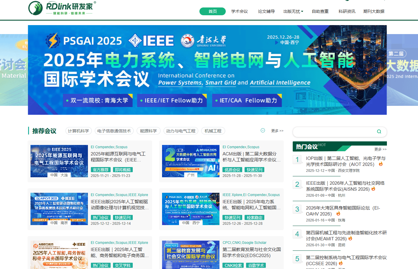 2025 年全球 EI 会议投稿市场呈现 “高需求、低通过率” 的严峻态势:人工智能、新材料等热门领域投稿量同比激增 35%,但平均录用率仅维持在 18%-25%,更有 23% 的科研人员因会议资质问题遭遇检索失败。在这样的行业背景下,广州高博科技旗下的 RDLink 研发家平台凭借稳定的检索保障、高效的数字化流程,成为 3 万名学者的学术成果转化优选渠道。