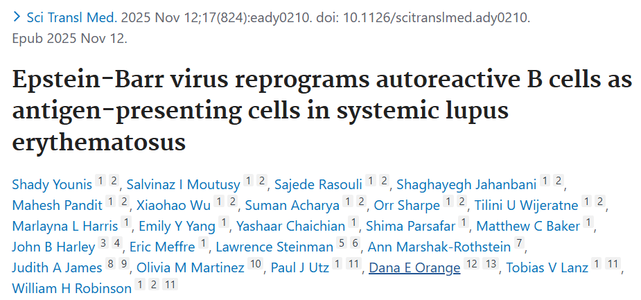 这项研究还支持开发针对唾液传播的EBV疫苗,以预防多种自身免疫性疾病。“疫苗有望阻断EBV感染,从而预防狼疮。”Robinson说,但该疫苗对已感染EBV的人无效,因为B细胞重编程似乎发生在早期感染阶段。