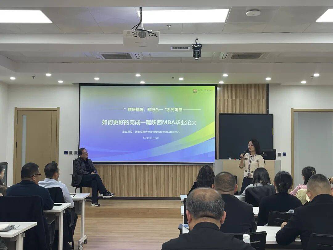 为助力陕西MBA同学顺利完成毕业论文这一学业关键环节,11月28日下午,“陕研精进,知行合一”系列专题讲座——《如何更好地完成一篇陕西MBA毕业论文》在管理学院南一楼306室举行。本次活动吸引了51位同学积极参与,现场座无虚席,气氛热烈。