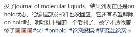 《 JOURNAL OF MOLECULAR LIQUIDS》被On Hold,大概率是因为去年9月份曝出的学术造假丑闻。