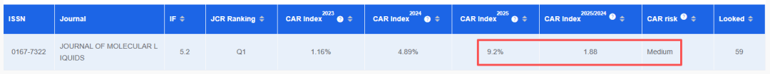 从JCAR指数(期刊综合学术诚信风险指数,也称“被踢指数”,年度动态计算,大于5%为中风险,大于10%为高风险)看,该期刊学术诚信为:中风险。