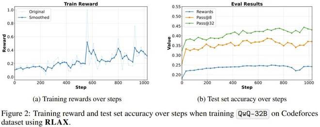 结果倒是非常亮眼。RLAX 仅用 12 小时 48 分钟,在 1024 个 v5p TPU 上将 QwQ-32B 的 pass@8 准确率提高了12.8%,同时在训练期间保持了对任务抢占的鲁棒性。