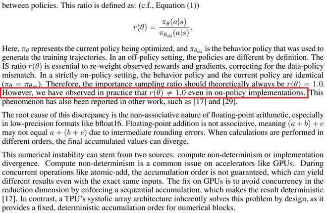 这种计算顺序的微小差异,在 bfloat16 下被放大,导致推理端算出的概率和训练端算出的概率无法对齐,进而导致训练崩溃。
