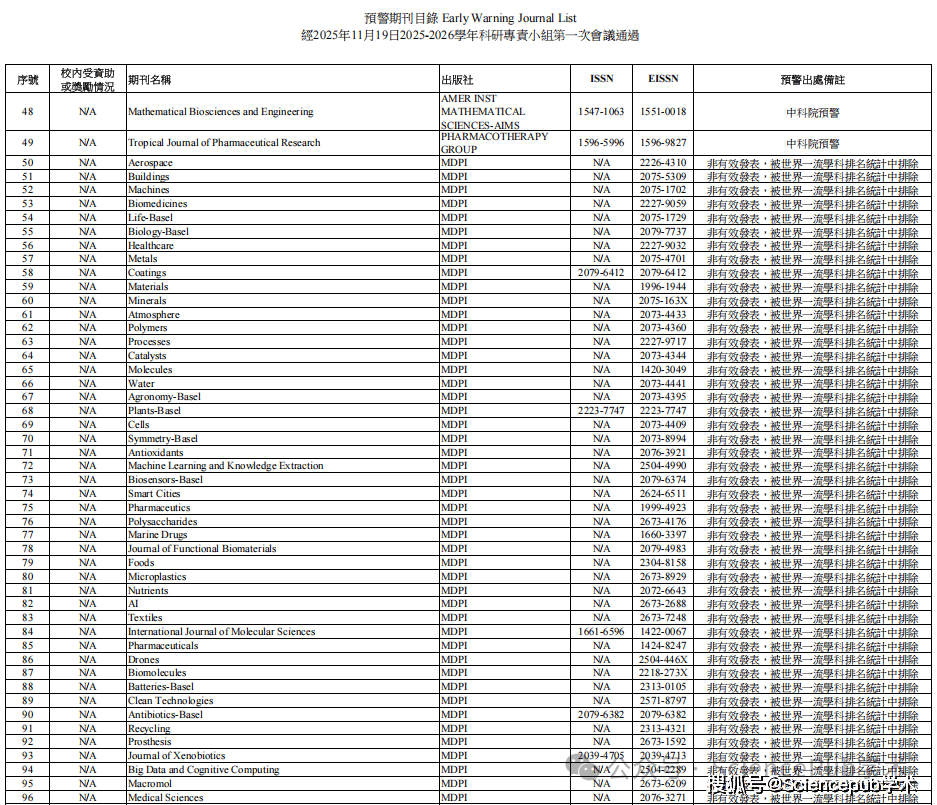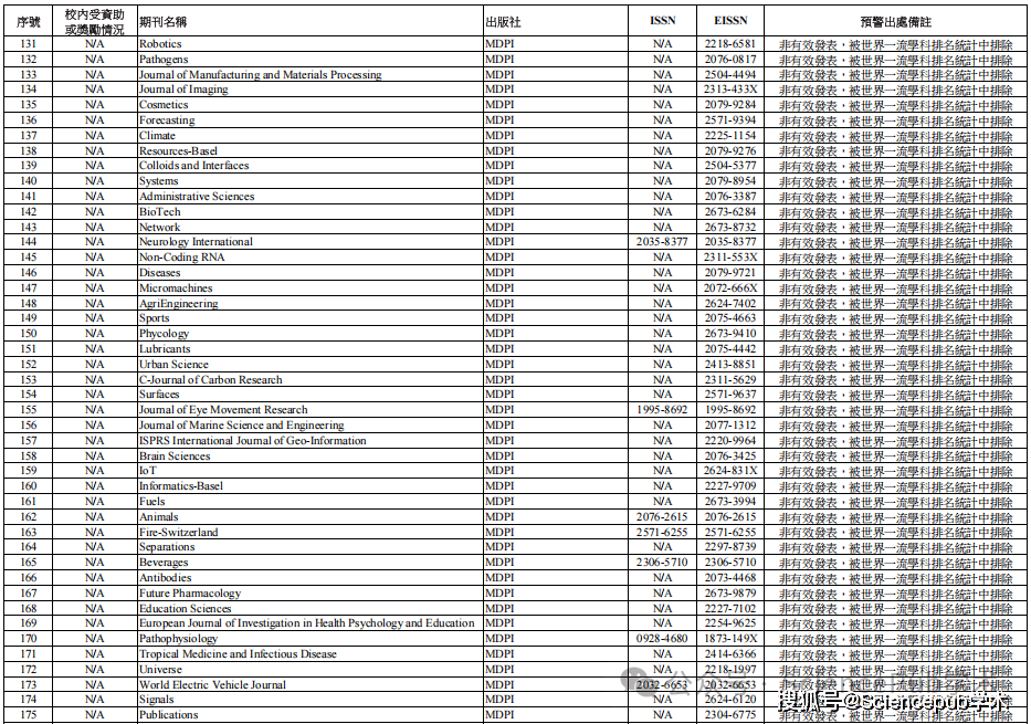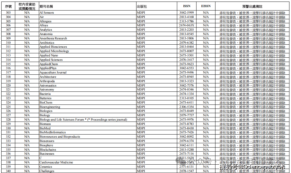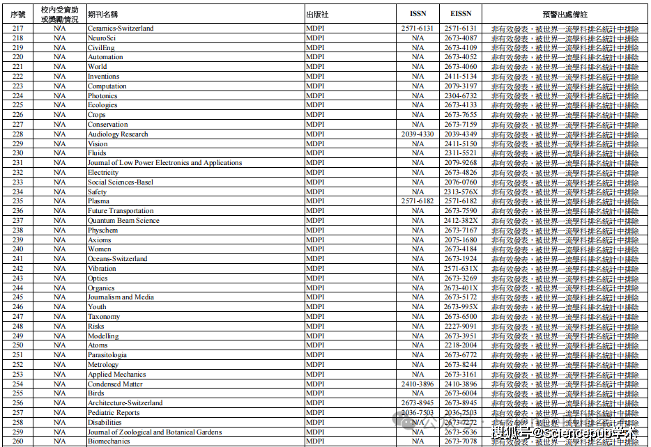 SciencePub学术协助发表】据相关学者分享,澳门城市大学近日已正式发布《预警期刊目录》,其中Hindawi、MDPI、Frontiers三家出版商出版的期刊全部在列。