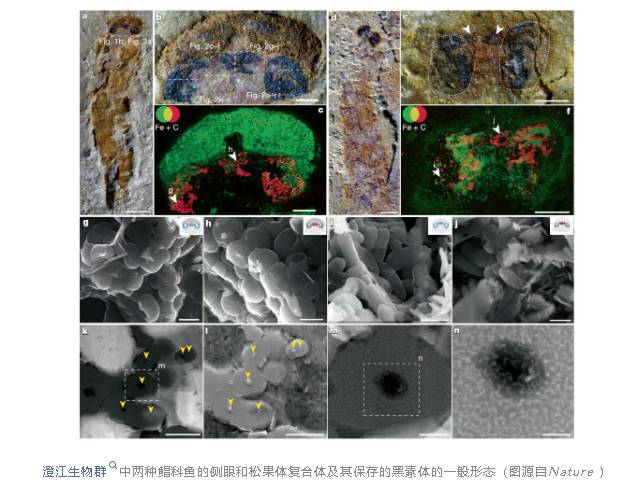 自达尔文时代起,脊椎动物视觉系统的起源和进化就令科学家们着迷。在所有冠脊椎动物中,都有两个侧面的“照相机”式眼睛,尽管一些蜥蜴也有一个“照相机”式的顶骨眼,来自松果体复合体。Crown脊椎动物的侧“照相机”型眼睛主要由球形晶状体、视网膜、虹膜和一组眼外肌组成。晶状体将光线聚焦到半球形视网膜上,产生视觉信号,通过视神经传输到大脑。具有高保存潜力的显著特征有助于识别化石脊椎动物的“照相机”型眼睛:富含黑色素的视网膜色素上皮细胞(RPE),通常表现为深色斑点,以及晶状体,具有浮雕效果或作为矿物填充物,因为其相对抗衰老。