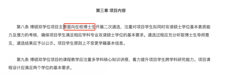 就以国务院前段时间发布的《“博士+硕士”双学位项目试点设置管理办法》来看——