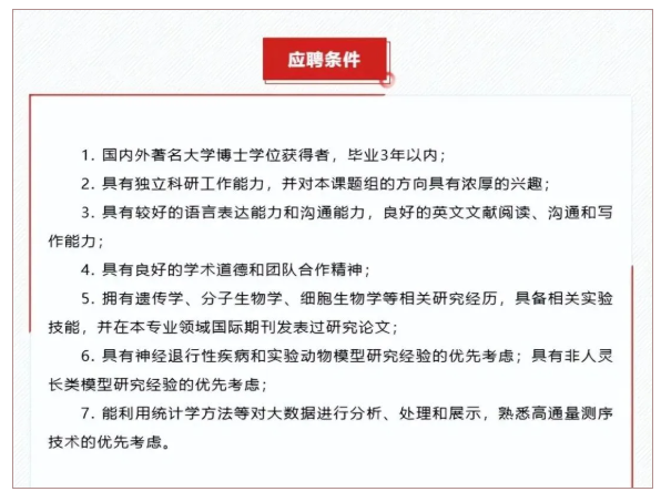 此外,饶毅还透露他正在面向全球,为自己的课题组招聘2名博士后。拟研究课题分别为:疾病的动物模型和分子治疗研究、新型病毒递送系统的工程化改造和应用。