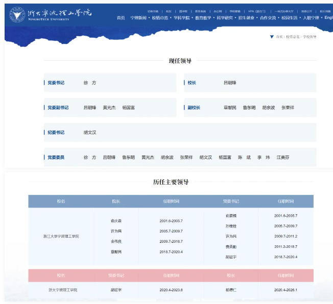2026.01-至今 浙大宁波理工学院党委副书记、校长。