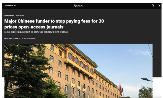 据Science News 2月24日报道,预计自2026年3月1日起,中科院计划停止使用学术经费和中央财政拨款支付约30种高收费国际开放获取期刊(OA)的论文发表费用。
