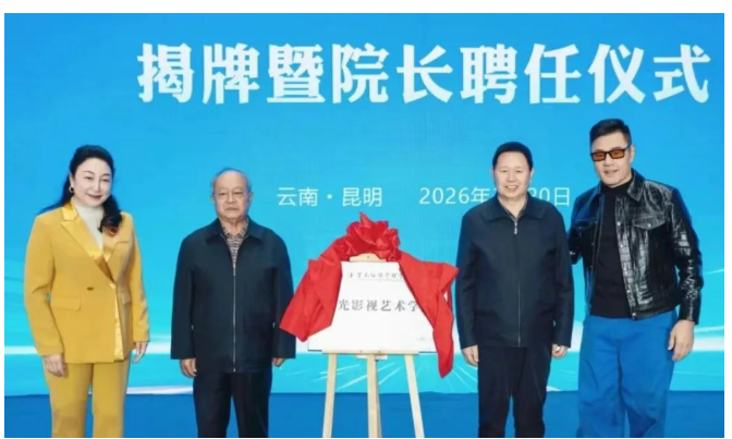 3月20日下午,云南经济管理学院安宁校区体育馆举行产业学院揭牌暨名家名师聘任仪式。著名演员、导演、监制于荣光正式受聘担任新成立的荣光影视艺术学院院长,成龙、周华健、李连杰、张国立、杨丽萍、吴京、胡歌、林更新、黄晓明等数十位影视歌界知名人士通过视频为学院成立送上祝福。
