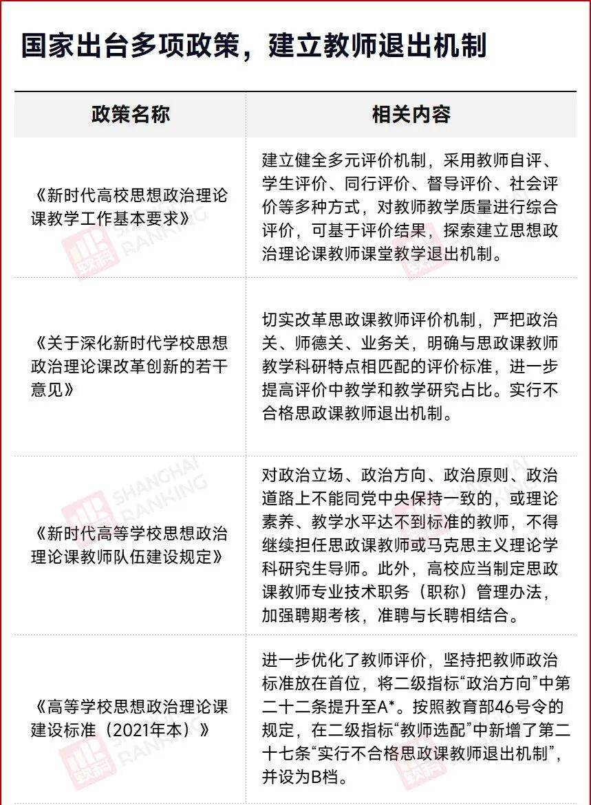 早在2018年,教育部就印发了《新时代高校思想政治理论课教学工作基本要求》,提出可依据评价结果,探索建立思政课教师课堂教学退出机制。