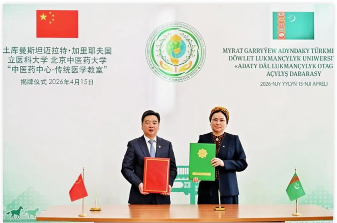 4月15日至17日,北京中医药大学校长唐志书率团访问土库曼斯坦,与土库曼斯坦迈拉特·加里耶夫国立医科大学签署共建中医药中心合作谅解备忘录,并揭牌成立中医药中心-中医教室。在中土合作委员会第七次会议期间,合作双方在中共中央政治局常委、国务院副总理丁薛祥和土库曼斯坦副总理兼外长梅列多夫共同见证下交换签署文本。