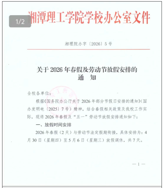 据湖南教育电视台消息,湖南的大学生也有春假了。4月17日,湘潭理工学院发布《关于2026年春假及劳动节放假安排的通知》,表示学校将于4月30日和5月6日放春假,与劳动节法定假期衔接,连休7天。