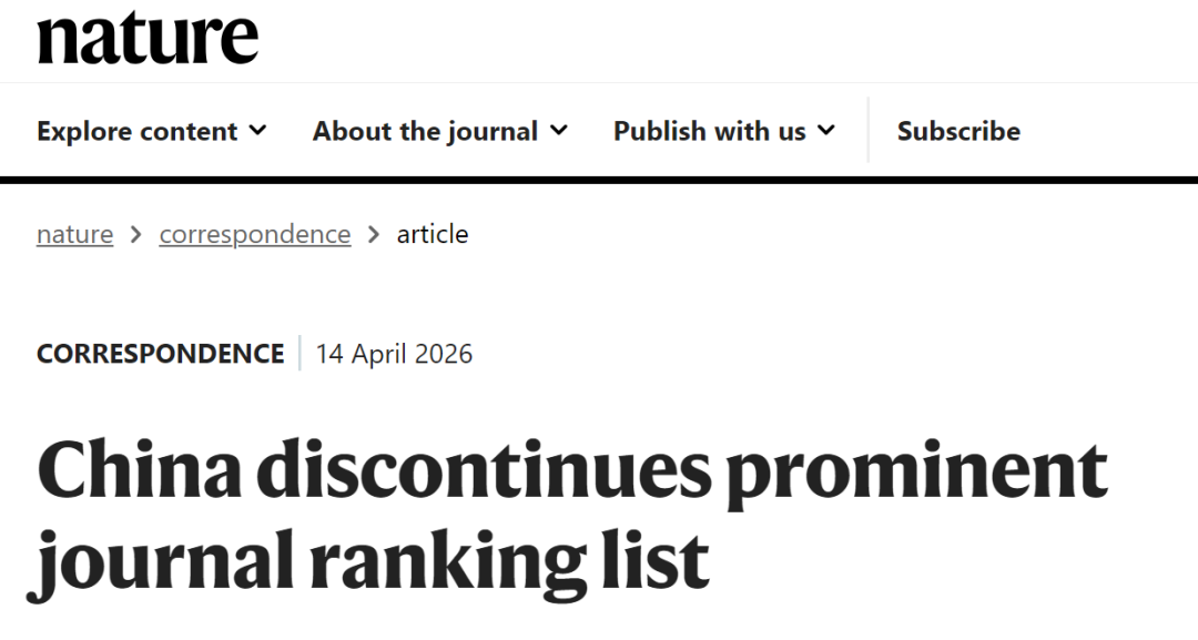 近日,针对中国科学院文献情报中心停止更新期刊分区表一事,Nature杂志发表了一篇评论文章,作者来自桂林医科大学。